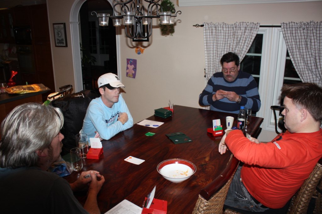 På det nederste bildet kan det se ut som Petter er i dyp konsentrasjon før et viktig utspill. Dette stemmer ikke, han rister saltet av handa etter å ha tømt potetgullskålen (til Olav sin store fortvilelse).