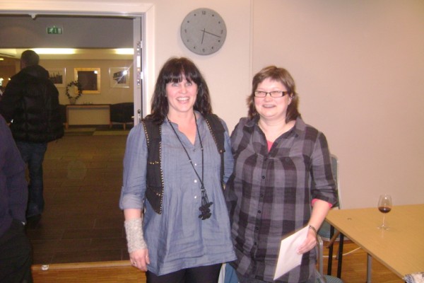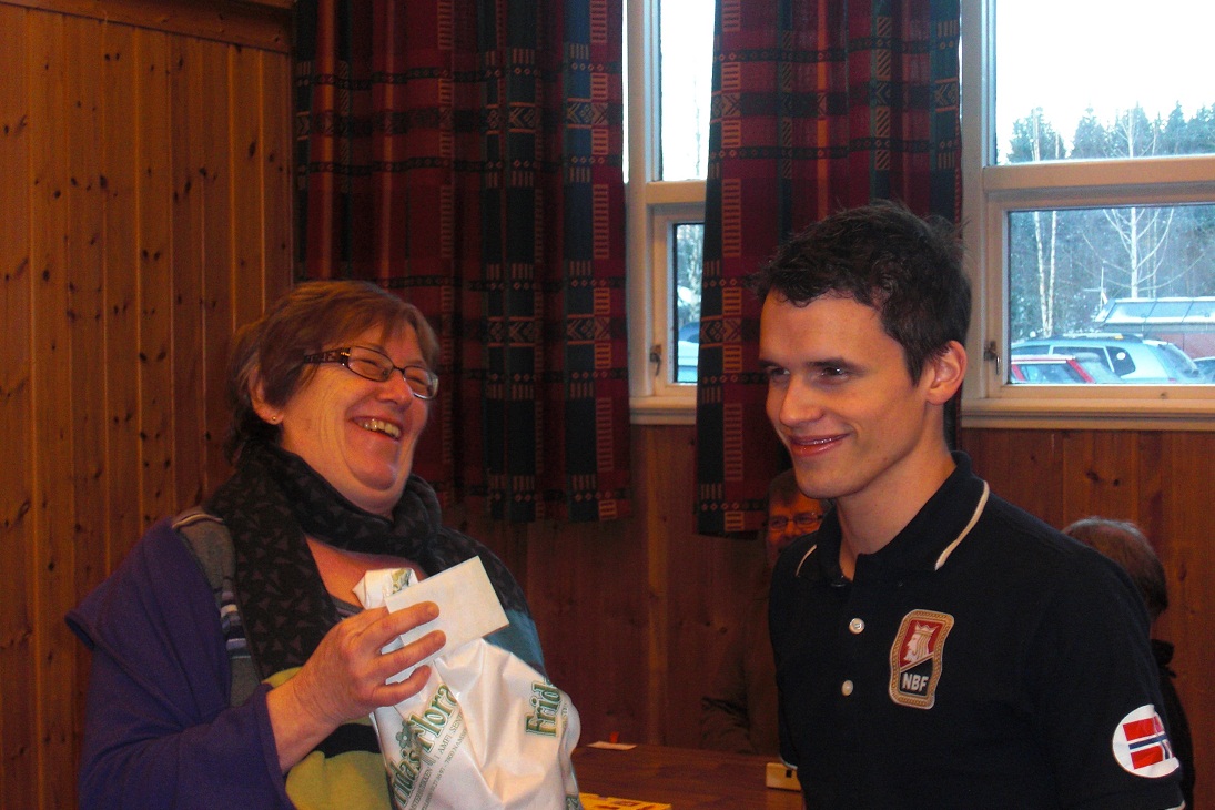 Årets julestjerne, Kristoffer Hegge, mottar blomster fra kretsens Aslaug Tinglum