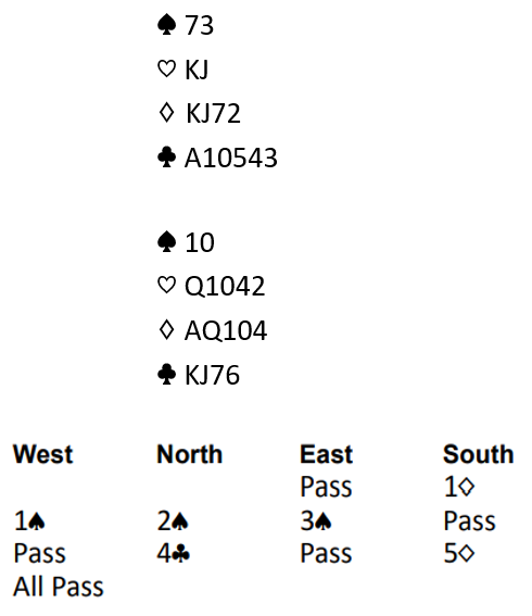 En litt merkelig konklusjon på dette er at kontrakten 5 ruter er bedre enn 5 kløver. I ruterkontrakt kunne spillefører få tatt ut trumfen og testet sidefargen hjerter for å innhente informasjon om fordelingen før kløvervalget måtte tas. I kløverkontrakt har ikke spillefører noen mulighet til å ta sidestikk før trumfen tas ut da det kan gi motparten stjeling, så der må kløveren tippes uten noen ekstra informasjon om fordelingen.