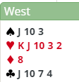 I dette spillet gjør et enkelt, naturlig fargesvar 2 hjerter det ganske enkelt for Ø/V: