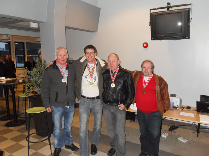 Gratulasjoner til vinnerne: f.v: Stig Gamlemshaug, Roger Træet, Frode Tveito og Finn Fyllingslid. med opprykk til 2. divisjon