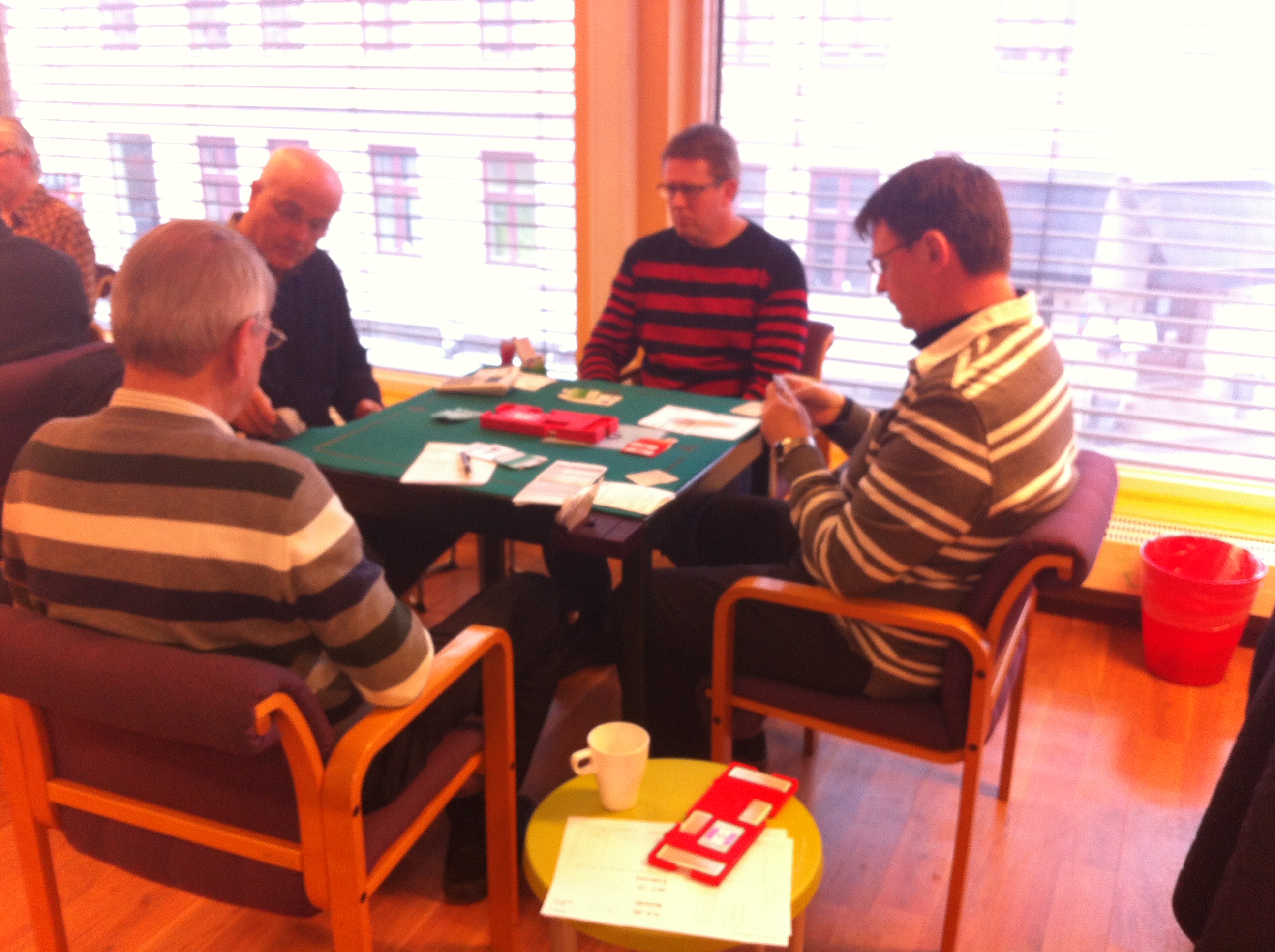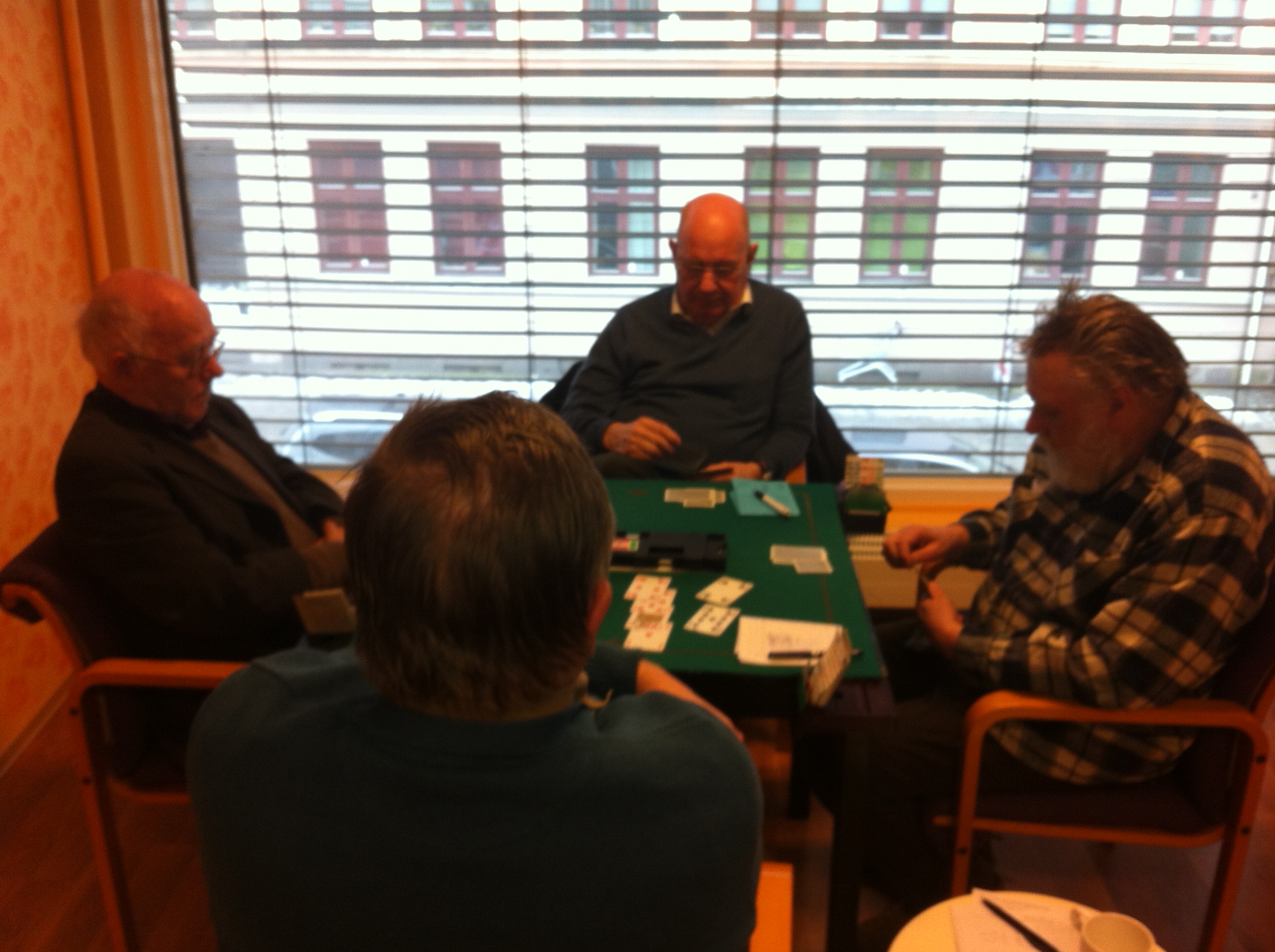 Det er i morgen 3 uker siden vi sendte stokkemaskinen til service i Sverige, men desverre har vi ikke fått den tilbake. Det betyr jo at vi måtte stokke kortene selv i kveld.(og ingen kortfil ute) Må si det var hyggelig å spille Howel igjen uten å vite noe om resultatet før det nærmet seg slutten. Runar og Morten vant til slutt foran formsterke Sigbjørn og Andres som nok engang preget pallen. Vi tar også med Tom og Kai som tok 3. plassen. Gratulerer !