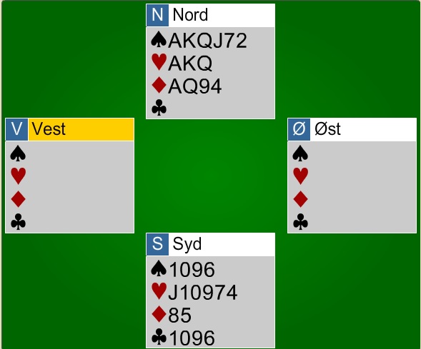 Gunnar Fylling var inne på riktig spor, men hans plan gikk ut på å stikke på hånden og så spille Ess og konge i hjerter før han spilte spar til bordet og kløver hvor han kastet siste hjerterhonnøren. Er motspillerne gode da vil den som har tredje hjerteren sørge for å være inne, og har den som bare hadde to hjerter 3 trumf (trumfen 3-1), vil det bli spilt hjerter til trumf. Trumfer spillefører har man et avkast for lite og må ta ruter kappen som ikke går.