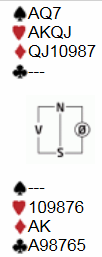 Meldingene startet med at øst passet, du åpnet i syd med 1 kløver, vest går inn med 1 spar. Makker i nord dobler, som normalt viser hjerter, og deretter gjør øst et krafthopp til 4 spar! Du lar deg imidlertid ikke affisere, og går videre til 6 hjerter med dine førstekontroller i tre farger. Vest går imidlertid på med 6 spar, mens nord endelig avslutter ballet med 7 hjerter! Endelig fremme hos vest tar denne litt betenkning før han legger passlappen i bordet.
