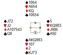 Kirsten satt i sør, og spilte 4 spar med liten spar ut fra kursholderen i vest: