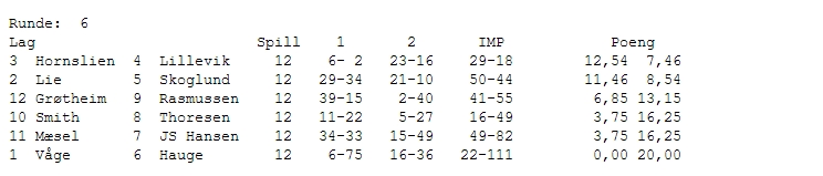 Det er 5 Jessheim lag i aksjon i årets Seriemesterskap. Personlig synes jeg dette er helt strålende.... Det som er nesten like kult, er at vi kunne splittet opp to lag for å få et sjette lag også..... Dvs at det er 24 spillere fra Jessheim BK som er ute å representerer klubben i årets seriemesterskap. Like så morsomt er det at 3 av disse lagene befinner seg i 3 divisjon, mens vi har 2 lag i 4 divisjon. Vi har som kjent 3 lag i 3 divisjon, samt 2 lag i 4 divisjon. Lagene er presentert under fliken "medlemmer", med unntak av lag Kalås som består av Jan, Nils, Roger og Elisabeth. Lag Lomsdalen hadde ikke flyt i første helg, men ligger trygt plassert midt på tabellen i sin avdeling. Lag Jørgensen fikk en tøff start, men har nå heng på opprykksplass med 13 VP. Det skal dog veldig god spilling til for å hente 13 VP. Lag Bergersen startet sånn ca midt på treet, men befinner seg akkurat nå på nedrykksplass. Det er dog kun få VP opp til trygg plass, noe vi regner med at de kommer til å ordne. Link til de forskjellige lagene: Lag Lomsdalen Lag Jørgensen Lag Bergersen Lag Korsmo og Lag Kalås befinner seg i 4 div, der ble det storseier til Lag Korsmo i det interne oppgjøret. Lag Kalås befinner seg i skrivene stund på den nedre halvdelen, men det kommer seg nok utover i turneringen. Lag Korsmo har tatt 6 seiere av 5 mulige, og leder nå med nesten 10 VP. Slik det ser ut så burde det være de to beste lagene fra 4 div som rykker opp. Så det burde være store muligheter for å kanskje få opp et nytt lag til neste års seriemesterskap. Resultatene finner dere HER