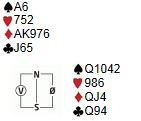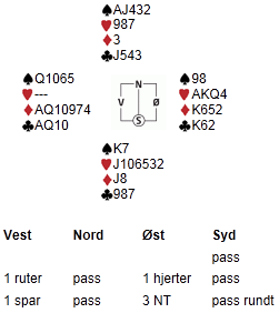 Håkan var like blid etter dette spillet, og tok det ikke så tungt om makker ikke var like aktuell som han sjøl. Håkan satt syd og hadde fått med seg en tungrodd sjel fra Heggeriset.