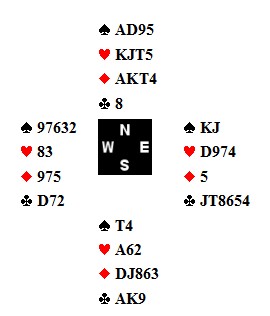 er en spiller på BBO jeg har fulgt med interesse i flere år. Han er en notorisk juksemaker og spiller sannsynligvis begge hendene samtidig som han er tilskuer. Dessverre er han nok ikke alene om å drive med fanteri, men jeg håper ingen av dere tillater dere å synke så lavt.. Selv ikke på BBO. Her er et par eksempler fra hans karriære: Han åpnet med sine 10 honnørpoeng og gikk rett i Blackwood når makker hadde vist det samme. Spilleføringen var heller ikke vanskelig. Først toppet han ut spardamen, før han tok for hjerter dame og fortsatte med hjerter til tieren. (ikke esset, damen og så kapp..) Så en "fin" dobling: "Makker" startet med ruter og selv om spillefører gjetta rett i spar, ble det to redobla beit. Jeg vet ikke om jeg skal le eller grine?