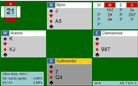 Det løsna for Austberg - Berg i den siste sesjonene, men som Jan Tore sa, "Da var det desverre slutt.." I nest siste runde kom dette spillet.