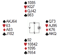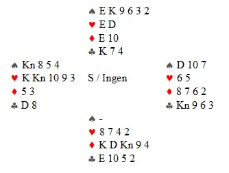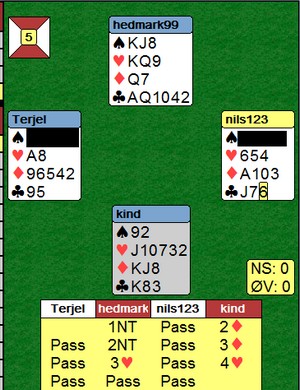 For egen del var dette det artigste spillet jeg og makker var involvert i i helgas divisjonsspilling. Åsmund Sandkjernan var i 6NT på øst sin hånd, og jeg plumpet ut med ruter-10: