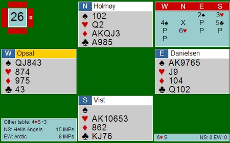 4.13.7.12 Kampens utfall avgjøres ved hjelp av Internasjonale Match-poeng (IMP - se punkt 2.8.2) og vinnerpoeng (VP - se punkt 2.8.3).