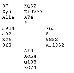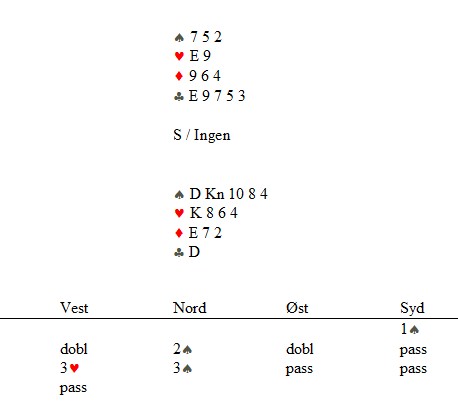 fikk jeg høre i dag. Nå er ikke jeg den som klager over utur og manglende glid, men i bridge må en sitte litt i dytten for å kunne vinne. I det lange løp får en selvsagt som fortjent, men her ble jeg og Martin hardt straffet synes jeg.