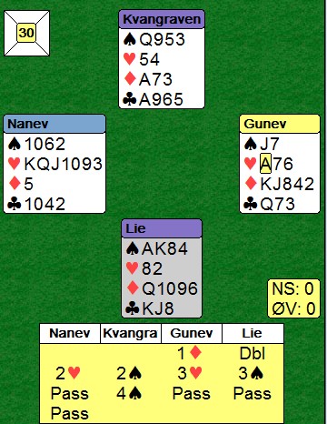 Denne kampen var den andre i Round Robin fra Ungarn. I den første kampen vant Norge 13.75 - 6.25 mot Norge/Nederland. En fin start for våre gutter. I kampen mot deButton var det en skrekkelig start for de norske. Jeg liker helst å skrive om gode prestasjoner, men jeg må nesten også referere når de er triste saker som vises. Det gikk litt bedre etter hvert når Norge meldte et par gode delkontrakter der engelskmennene peisa på til utganger som sto på veldig mye. Dobbeltscorer på 140 i 3sp mot -100 i utgang er det samme som en utgangssving utenfor sonen. Kampen endte likevel 65 - 28 til deButton.