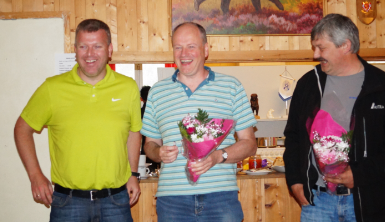 Tre glade herrer med nye nåler til jakkeslaget; Stig, Roar og Trond Magne,
