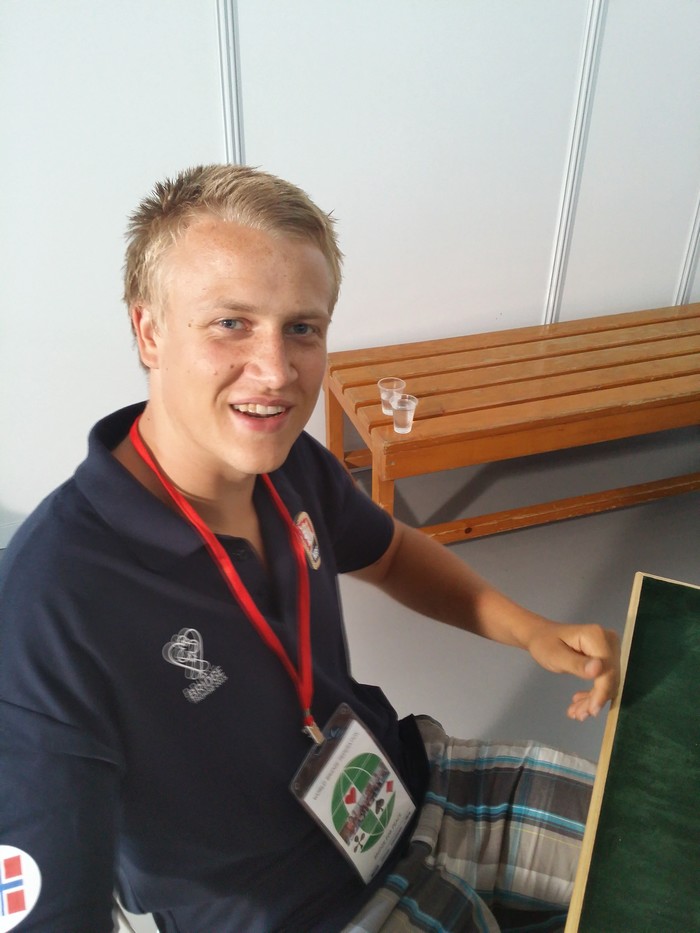 i VM. Fire seire i de fire første kampene og 51.5 poeng. (40 er middels). Det holder til en sjetteplass. Når Round Robin er ferdig, er de åtte beste lagene klare for kvartfinaler. De fire beste får velge seg motstander av lagene fra femte til åttende plass. Det står ikke noe om at det er Carry Over. Kampene i sluttspillet går over 56 spill, fire sesjoner a 14 spill. Youngsters har starta enda bedre og ligger på 4.plass etter tre kamper med 41.7 poeng (30 er middels). Jentene sliter mer, men der er vel ambisjonsnivået litt lavere og de tar en og en kamp. Noen seire er helt sikkert målet. Her en noen bilder Lars Arthur har sendt. Til venstre med ryggen til: Espen Flått Over: Tor Eivind Grude. Under: Kristoffer Hegge