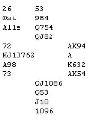 INederlenderne stoppet i 3 kløver som Ø-V, mens Harald Eide og Kristian B. Ellingsen meldte slik: