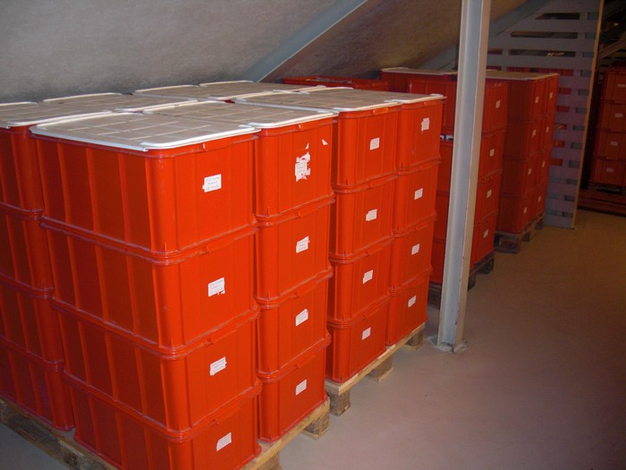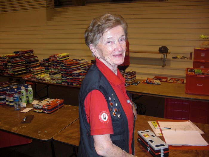 Denne dama er 84 år! Hun står opp i otta for å forberede alt som har med kort å gjøre til alle turneringene under Festivalen. Blir du ikke trøtt, Gerd, spør jeg. "Neida, dette går så fint så. Jeg er frisk som en fole og det er ingentlig som feiler meg på noen måte. Hvorfor skal en ikke da gjøre ting som er moro og gir livet mening? Jobben begynner i åttetida på morgenen og vi er ikke ferdige før mørket begynner å senke seg over byen." Du har med deg noen jenter i staben, ser jeg. "Jada, flinke jenter som gjør en flott jobb. Jeg vil også skryte av guttene som sitter i gangen og legger de kortene vi mangler. De er systematiske og når vi får kassene med spill, er de nøyaktig merket sånn at rett spill kommer til rett turnering til rett tid" Folk som ikke spiller bridge tror at det går med en kortstokk pr. bord og at de da brukes mange ganger. Det vet vi ikke er rett og Gerd forteller at det går med omtrent 60.000 dubletter under festivalen. Det meste legges på vinteren og våren i forkant, men gutta i bua suplerer der det trengs. Hvis du tror dette er første gangen Gerd er kortansvarlig, tar du feil. Jobben hadde hun i alle år på Lillehammer og det var naturlig at hun ble med ned hit til Fredrkstad også. Hun forteller at hun ikke blir lei og så lenge helsa holder kommer hun tilbake. De fleste av yrkesaktive ser fram til pensjonisttilværelsen der de skal lufte hunden og drikke sherry på terassen med gode venner. Sånn er ikke Gerd Teigen. For noen år siden var det utlyst en jobb på en KIWI-butikk i Hamar der hun bor. I konkurranse med over 40 andre søkere fikk hun jobben i en alder av mange-og-sytti. "Der jobber jeg enda!, sier Gerd og smiler det flotteste smilet du kan tenke deg. Måtte vi andre få en sånn alderdom, selv om jeg føler ordet "alderdom" nesten ikke er rett å bruke i denne sammenhengen. Her er noen av de 60.000 kortstokkene som går med under årets Festival.