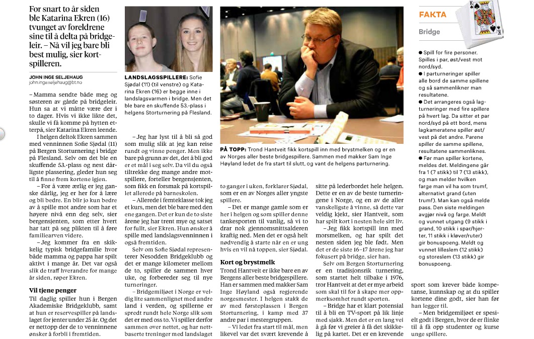Premiepotten var på svimlende en million EURO etter at alle de litt over femti parene hadde blitt auksjonert bort. Tor og Geir var det mest betrodde paret og ble solgt for nesten 50.000 EURO (ca 400.000 NOK), mens en god del av de andre måtte kjøpe seg selv for 5000 EURO. I tillegg kom startkontingenten på 1500 EURO, så dette er ikke akkurat sommerbridge. Helness og Helgemo fikk en svært tung start på turneringa og lå en stund sist. Da det nærmet seg finalespillet, var de i nærheten av å være blant de tolv beste, men de måtte ta til takke med B-finalen. Der ble de nummer to bak russiske Gromov - Dubinin. De andre norske parene klarte heller ikke å prege turneringa. Vi husker at Hoftaniska - Charlsen i fjor ble sist og denne gangen hadde jeg tro på dem. De lyktes heller ikke denne gangen og vaket hele tiden i den siste fjerdedelen. Erik Berg hadde lagt igjen flaksen hjemme og sammen med Steffen Fredrik Simonsen var de blant de beste om en snudde resultatlista på hodet. Roar Voll og Asbjørn Kindsbekken lå en stund bra plassert, men det ble for ujevnt. Som jeg skreiv i går var det Berg - Austberg som kan være litt fornøyd til slutt. Dere vant en sterk C-finale og kunne hente premien på 11.000 EURO. Alle resultater finnes oppe til høyre. Ja, hva skal vi si om dette da? Det føyer seg nok dessverre inn i rekken av bekreftelsen på at det er et stykke opp og fram. Parene vil sikkert forklare med utdrag og at makker ikke var på høyden, men det er resultatene som teller i det lange løp. Det som er bra er at norske par tar steget ut i verden og tør måle seg med de beste. Vi må tåle å få juling, så får vi håpe at pilene peker oppover etter hvert.