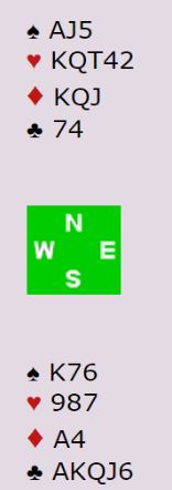 Det er klart at å spille 6NT er bedre med disse kortene. Med så mye stikk i de andre fargene behøves ikke mer enn to hjerterstikk, og da kan det ikke gå galt slik det sitter. Og om spillefører i 6NT er nord kan man få spar i utspill og dermed tre stikk i den fargen. I så fall behøves kun ett hjerterstikk da det blir 3+1+3+5=12 stikk.