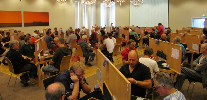 Denne artikkel blir oppdatert fra toppen, sånn at det nyeste ligger øverst. Bla deg nedover for å få med det som har skjedd fra starten, men jeg er ikke på plass før etter spill 30. De fleste vet det sikkert allerede, men i år er det "bare" 52 par på startstreken. Tre spill i runden og 153 totalt. De fleste parene er kvalifisert gjennom kretsene, men det er også en del som har kommet med gjennom sterke resultater i andre nasjonale turneringer. Det spilles til klokka 20.15 i dag og i morgen, mens på søndagen er turneringa ferdig kl. 14. Premieutdelingen er rett etterpå. NILS KVANGRAVEN LAGER BULLETINER