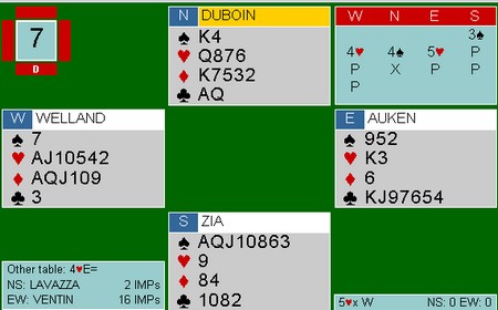 Når jeg leser slike "oppgaver", skjønner jeg hvorfor norske spillere og par går så mye beit i slemmer. Jeg passer 5kl hundre av hundre ganger. Ikke fordi det ikke kan stå 12 stikk, men jeg vet ikke hvor mange esser vi har. Og heller kan jeg ikke få undersøkt. I min verden er det å gamble når man tar en sjanse og gjetter uten å ha den ringeste anelse om oddsen sin. Joda, jeg har to esser i oppgaven under, men uansett hvordan en snur og vender på korta er og blir det en minimumshånd for 11-14 NT, i alle fall når du har vist fem kløver. Og når makker valgte å gå ned i 5kl kan jeg ikke skjønne at jeg har noe mer i bidra med. Gå inn på NILS KVANGRAVEN sin side og send inn svar du også.