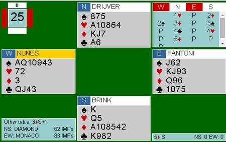 Nesbotn, med flere Kolbotn spillere på laget tapte med 19 IMP mot Ås 2, men har tatt en 21 IMPs ledelse mot BånnSki.