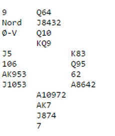 Det var 3 bord og spenstige kort. Mange slemmer, de ferreste ble meldt.