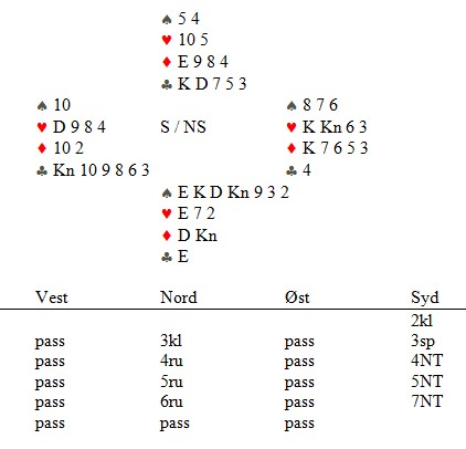 Quiz 1 Først skal du få prøve deg for å se om du klarer å løse problemet med en 8-4 hånd. Hva melder du over makkers 3NT og hvordan tenker du deg det videre meldingsforløpet? (logg deg på og svar i kommentarfeltet)