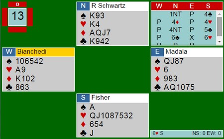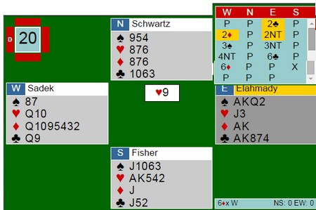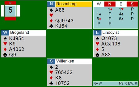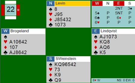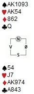 Frank klager over at han alltid blir mobba på hjemmesida vår. Her skal han få litt skryt. Innimellom bleieskift skviset vi inn ei lita økt på BBO, og Frank var spillefører i 3NT fra syds hånd.