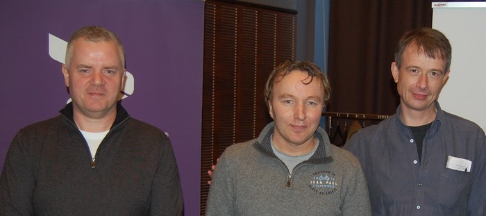 Det er ikke mange år siden det var venteliste for å bli med i elitepulja i Bergen Storturnering. Jeg husker jeg stilte spørsmål ved kriteriene, men det kan virke som tiden har løst problemet for arrangøren. 32 par i elite og 43 i åpent er selvsagt bra og turneringa er en av de største i landet enda, men det sier noe om de utfordringene vi har. Noen som ikke hadde utfordringer av betydning, var Stavanger sine Jan Erik Olsen og John Helge Herland. De tok er klar seier, nesten 3% foran neste par. Det som gleder kanskje aller mest, er at på plass 2-3-4 er det fem av seks juniorer. De lovende er i ferd med å ta steget helt opp. Jeg har vært opptatt i helga, så hvis noen har et spill eller to er det fint om jeg får mail. RESULTATER Mathias Beyer sammen med vinnerne I Åpen klasse vant Helge Toft og Geir Ove Henden RESULTATER