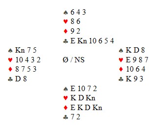 I bridge er det mange ting som er rett en gang og feil en annen gang. Noen ting er bare rett. Så som dette spillet. Syd spiller 3NT etter at syd har vist 20-21, og vest starter med hjerter 3, norske utspill, til makker ess.