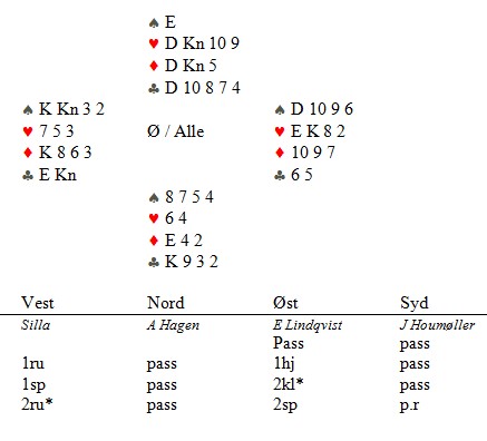 Hvilken farge som skal ut av kløver eller spar kan vel diskuteres, men det paradokse var at det var KUN hjerter ut som ga hjemgang.