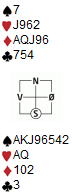 Full av selvtillit prøvde han seg dermed i 4 spar i spillet under, etter at Jonny hadde gått inn med 2 kløver i vest. Jonny spiller kløveress og konge ut, til stjeling på hånda. Så kan jo du overta?