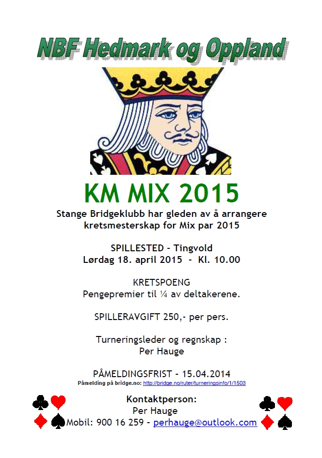 Stange BK arrangerer kretsmesterskapet for mix 2015 lørdag den 18. april. Påmelding til KM mix kan sendes: