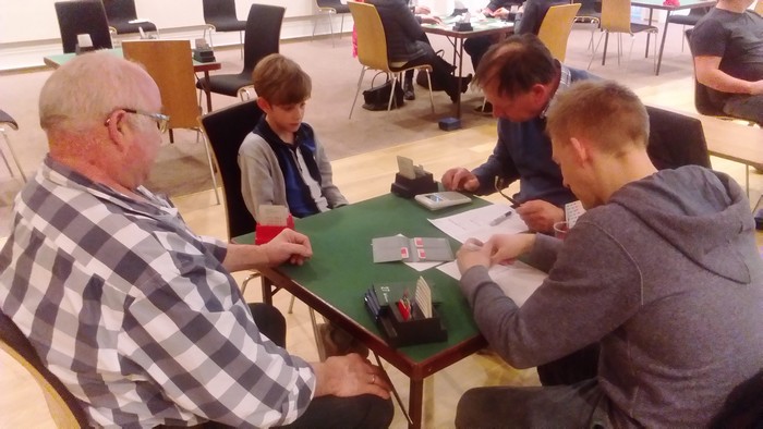 Siste kvelden av Påsketurneringen som gikk over 5 kvelder ble vunnet av Ivar og Eivind, men kun et poeng foran Kari og Kai som delte andreplassen med Morten og Arild. Men det ene poenget var nok til å ta hele sammenlagtseieren.....så vidt foran Kari og Kai. Vi gratulerer så mye !