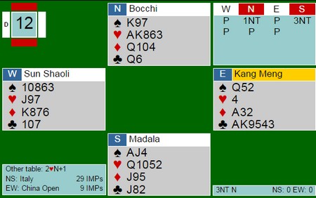 I spill nr 5 fra andre kveld i vårcupen måtte Christian Otterbech ty til to-sidig skvis for å få 12 stikk i en knallhard 6NT. Fantastisk godt spilt. Ingen andre fikk mere enn 10 stikk. Se hvordan han klarte det her>>>>
