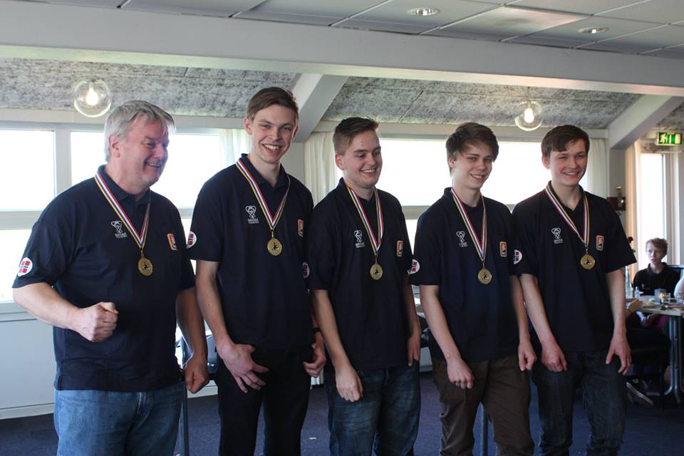 Melhus BK hadde med 2 spillere på laget som ble Nordiske mestere for U20 i Danmark i Påsken. På bildet ser vi Lars Eide, Sebastian Geissler (Melhus/Rauland), Ole Andre Haukås (Rauland), Joakim Sæther (Melhus) og Marcus Andreas Scheie (BK Norrøna)