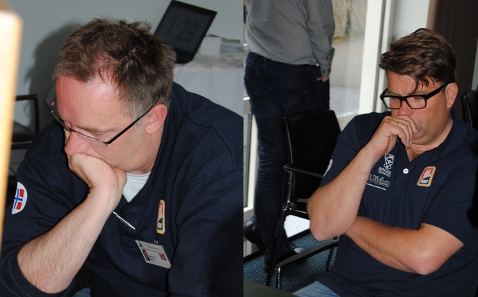 Spill 21: Feil majorfinesse av svensken Nils spilte ut hjerter knekt mot 5kl og jeg skjønner godt at svensken tok kappen for å kaste en spar. Vi som kjenner Kvangraven sine sperremeldinger hadde lett vunnet 5kl!! Terje og Allan dobla 4hj etter et helt annerledes meldingsforløp og tok ei beit. 5 IMP til Norge.