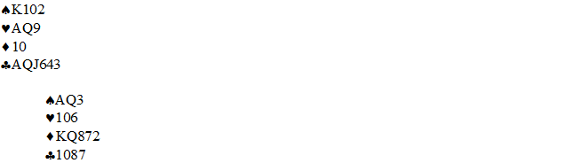 Da femte kløver ble innkassert, var sør skvist. Han måtte kaste sine hjerterhonnører for å hindre at bordet tok to ruterstikk til slutt, men da sikret hjerter knekt det nødvendige ekstra stikket.