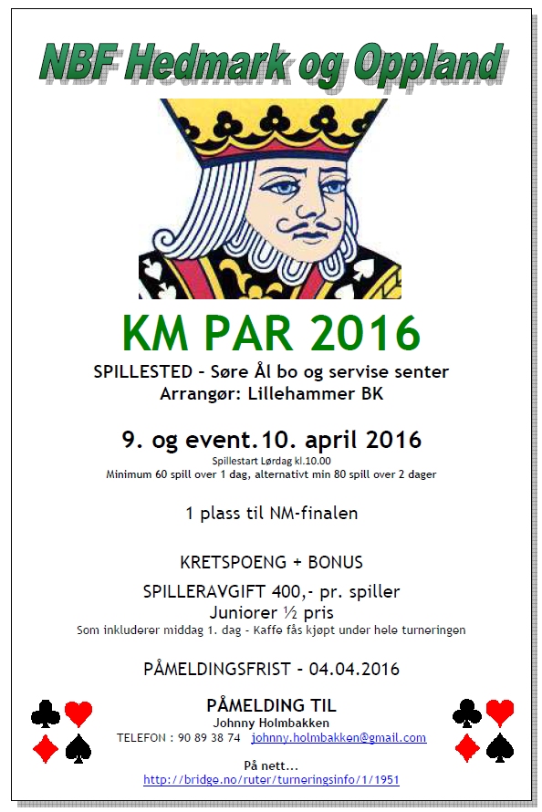 Manglar du makker så ring Jan Rømmen på telefon 48 14 76 99 eller send SMS. Han vil kople dei som tek kontakt. Dette gjeld også dei som ikkje er medlem i laget, men vil prøve seg ved bridgebordet. Også spelarar frå naboklubbar er velkomne - og same ordninga gjeld for dei.