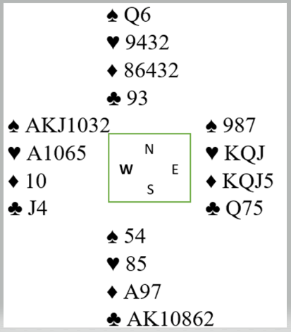 Ved noen bord gikk det fort, tre runder kløver fra start. I tredje kløverrunde kastet bare vest ruter 10. Nord kunne stjele, forsvarets tredje stikk, men da var det ikke mer å hente for N/S - utgang til notering.