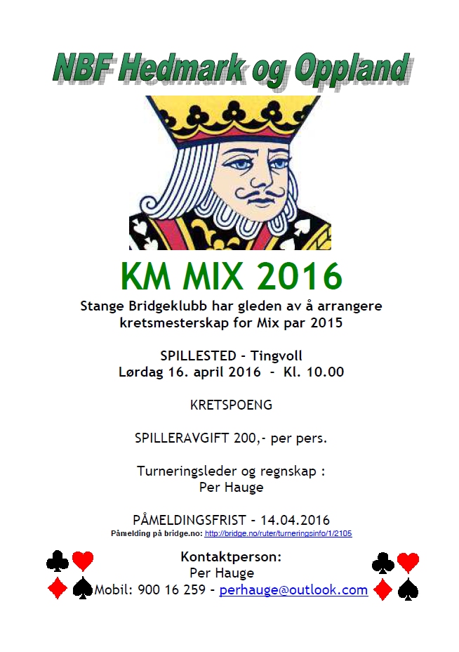 2. kveld av april-turneringen (barometer) vant: Per & Roy 60,3 % Gratulerer! Vi beklager treg start siden kortfilen manglet i kofferten. Men Espen greide heldigvis etter turneringen å lese inn filen etter å ha fått den på mail.