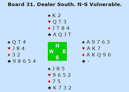 En tøff 3 grand (spill 29) føk hjem ved begge bord. Slik spillet ble refererert på BBO så det unektelig ut som om Norge kunne betet kontrakten mot slutten, men nei, uavgjort spill.