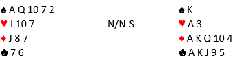 Legg merke til at spar knekt sitter dobbel. Så det er fire sparstikk å hente, men nord stopper den femte sparen. Så spillefører vil med fire stikk i spar kun ha tolv stikk om han ikke får seg kløverstjeling hos vest. Og tar han kløverstjeling så kan han ikke lenger få tatt ut trumfen og hentet sparstikkene (det blir ikke igjen noe inntak til vests spar).