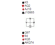 Sven-Olai og Magne hadde meldt seg rolig opp i 6 kløver, en kontrakt som tilsynelatende avhenger av hjerterfinessen. Utspillet var spar knekt, som gikk til liten og damen.