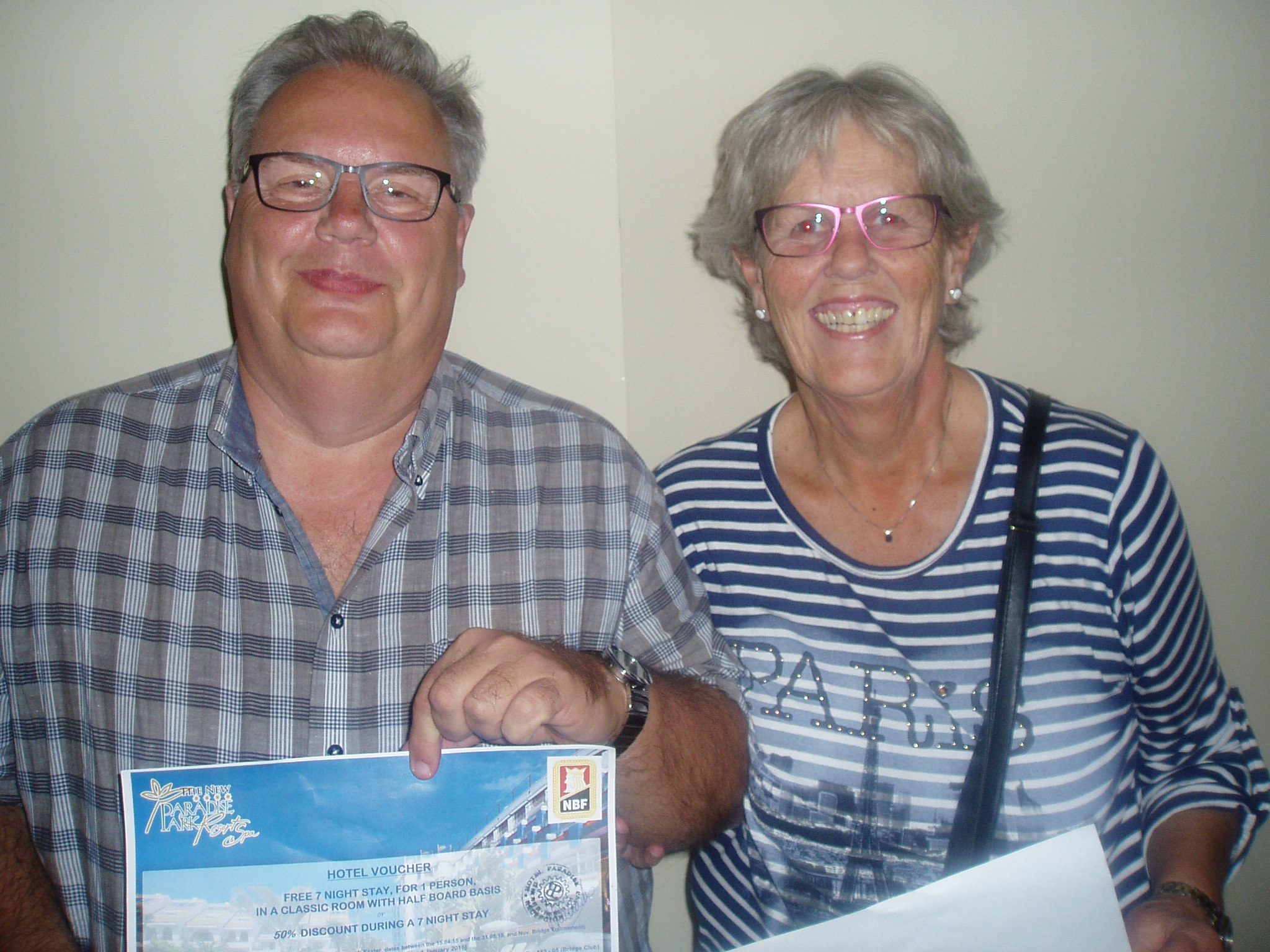 På Paradise Park, Los Cristianos, Tenerife er den første av 3 uker i VI NBF and Paradise Park Bridge Festival avviklet med 10-13 bord i både A og B-puljen i trivelige omgivelser og hyggelige bridgespillere. Vi har dessuten spilt facitbridge hver kveld på hotelltaket og vi har hatt quiz-kvelder. I hovedturneringene fredag/lørdag stiller Hotel Paradise Park med førstepremier i begge puljer, som er 1 ukes opphold, eller 50% reduksjon på hotelloppholdet ved deltakelse på bridgefestivalene i november 2015 eller januar 2016. Dessuten har Eiendomsselskapet Solmar Vest ved sin norsk eier Ivar Olsøn-Lunde stilt opp med pengepremier til 2.plassene i A og B, samt tennisskjorter.
