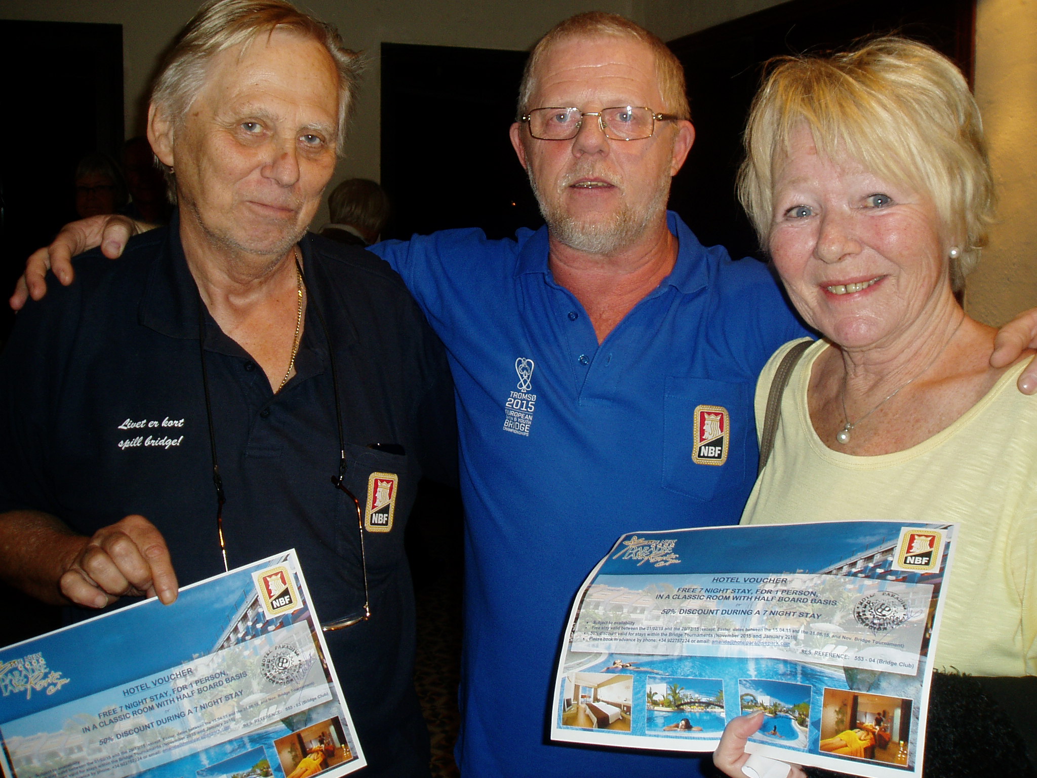 1. premien i begge puljer var satt opp av Hotel Paradise Park, Los Cristianos med 1 ukes opphold på hotellet i løpet av 2015 (eller 50% reduksjon under bridgefestivalene i november 2015 eller januar 2016). 2. premien var satt opp av eiendomsselskapet Solmar Vest med et kontantbeløp i Euro i begge puljer.