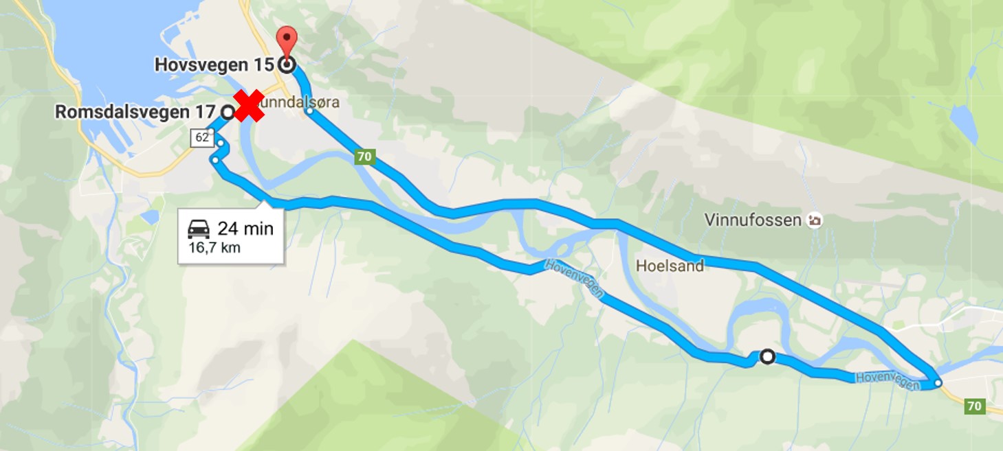 Fredag 4. november kl. 20.00 stenges Drivabrua. Den åpner ikke før søndag kveld. I denne perioden vil det omkjøring via Mæhle (se kart under), som er en ekstra strekning på ca. 17 km o,g som tar omtrent 25 min å kjøre. På grunn av smale veier vil det bli kolonnekjøring på denne strekningen, noe som innebærer (dersom man er maksimalt uheldig og bommer på kolonnen) at en må beregne ca. en time ekstra.