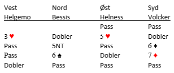 Det tok helt av ved det norske parets bord, og Bessis-Volcker endte i 7 ruter doblet! Siden ruteren sitter så behagelig ser det som sagt ut til å være tretten stikk. En hjerter kan trumfes hos nord og syds spartaper kan kastes på kløver.
