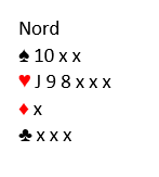 Ø/V hadde nemlig en litt finurlig definisjon på vests svarsdobling. Den var flertydig, og kunne innebære enten hjerterfarge eller begge minor. Øst satt med en monsterhånd og firekorts spar, og han «så» derfor - trodde han – at makkeren måtte ha hjerter. Så han smalt til med 6 hjerter med A-K-10 fjerde! De meldte seg rett opp i slem hvor trumfen var min sekskortsfarge! Vest som hadde singel hjerter trodde selvsagt ganske riktig at øst hadde en monsterhånd, men med en million hjerter. Dermed spilte de 6 hjerter med tre udoblede bet på 4-1 tilpassen hvor de kunne vunnet 6 kløver, 6 ruter, 6 grand og...6 spar (!).
